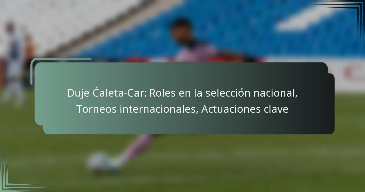 Duje Ćaleta-Car juega un papel crucial en la selección nacional de fútbol de Croacia, principalmente como defensor central. Sus habilidades defensivas, cualidades de liderazgo y comprensión de la dinámica del equipo contribuyen significativamente al rendimiento general del equipo en los torneos internacionales.